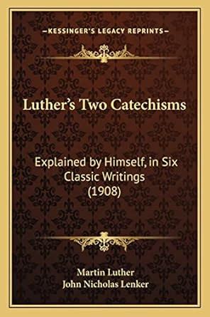 Read Luther s Two Catechisms Explained by Himself in Six Classic Writings Classic Reprint Kindle Editon online is a convenient and frugal way to read Luther s Two Catechisms Explained by Himself in Six Classic Writings Classic Reprint you love right from the comfort of your own home. Yes, there sites where you can get Kindle Editon "for free" but the ones listed below are clean from viruses and completely legal to use.
